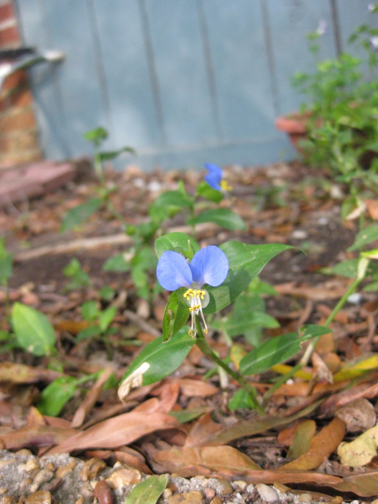 September 30. I started out the spring of 2011 nurturing plants a bit – I planted basil (we enjoyed lots of pesto). And put in a strawberry plant for the fun of seeing a “distressed plant†(read: 75% off) flourish with leaves (and some tiny fruit!) But before I did anything with our flower seeds I started driving to the office so often I simply had no energy for plants. Imagine my surprise and joy when I found these in the neglected backyard!!